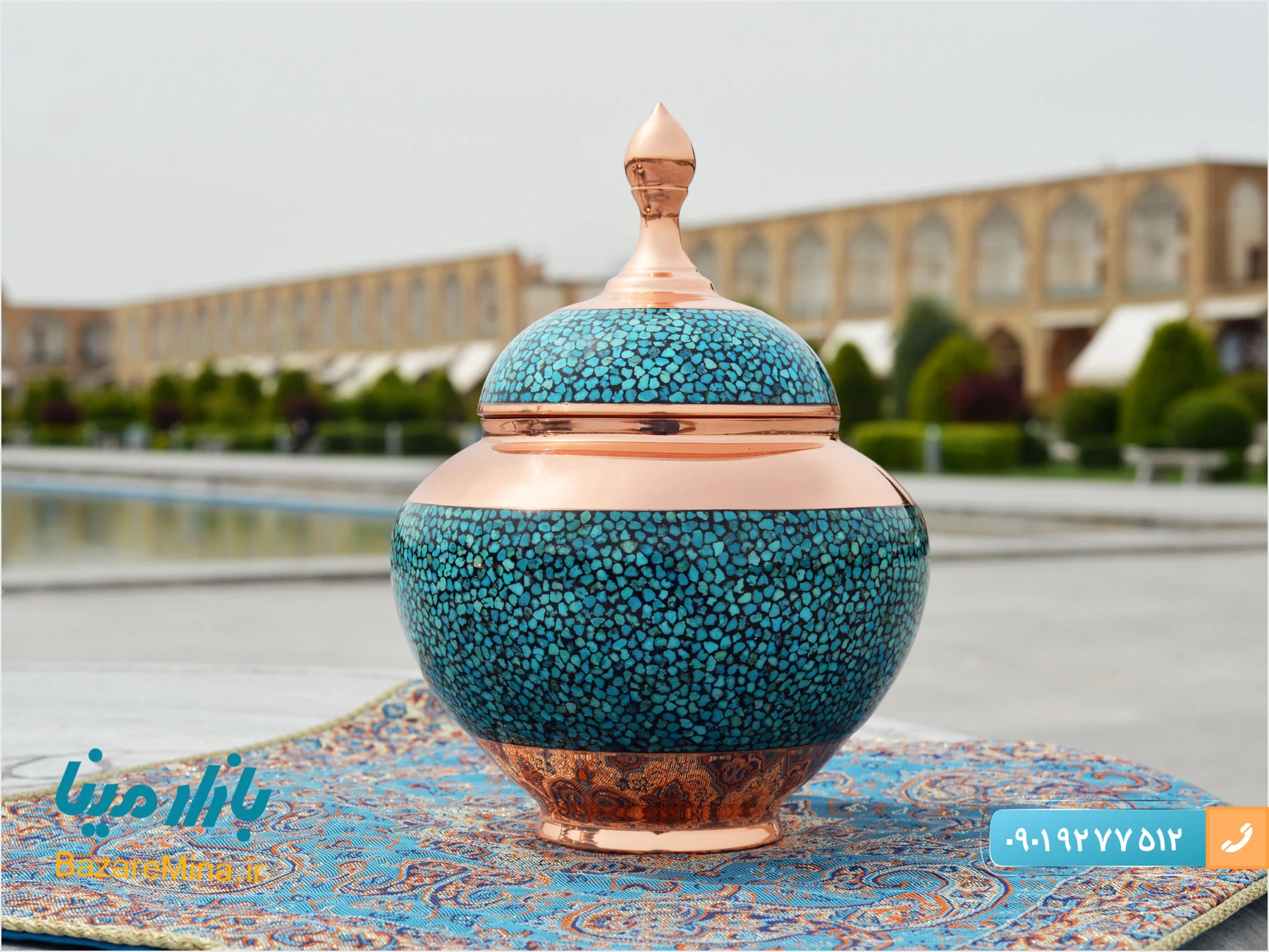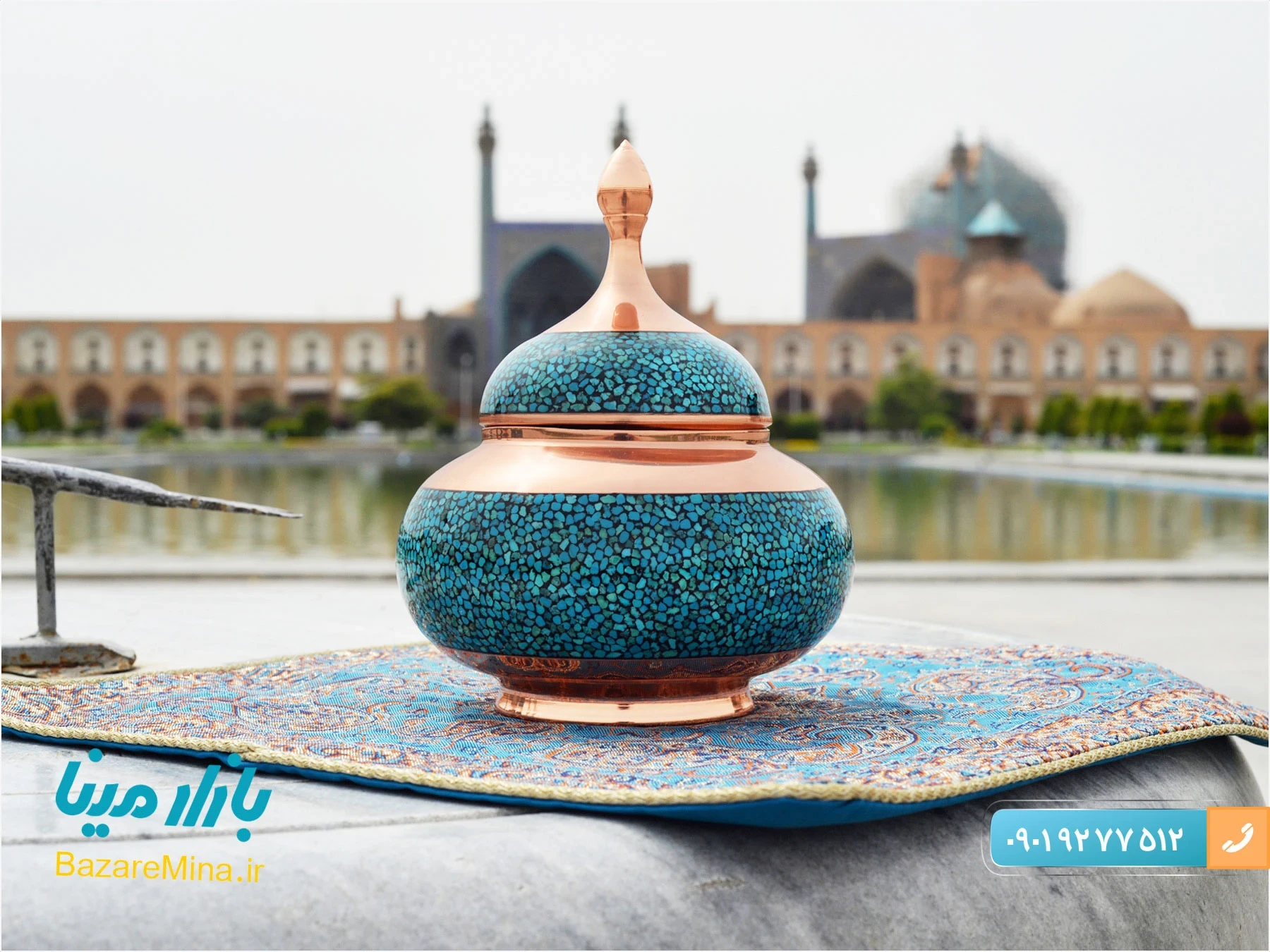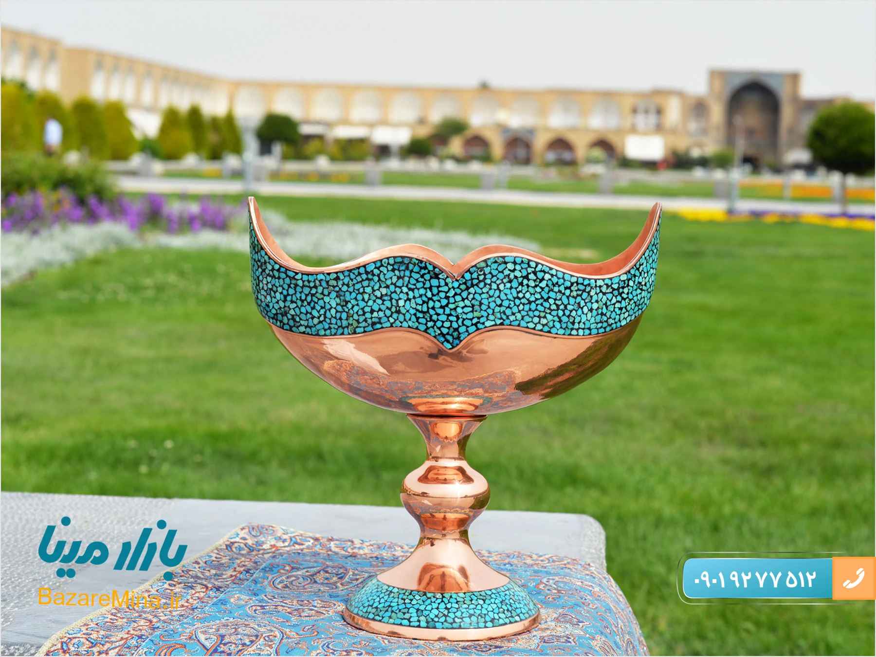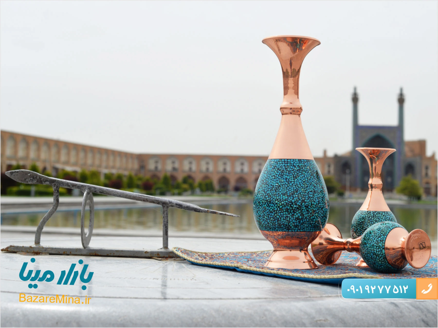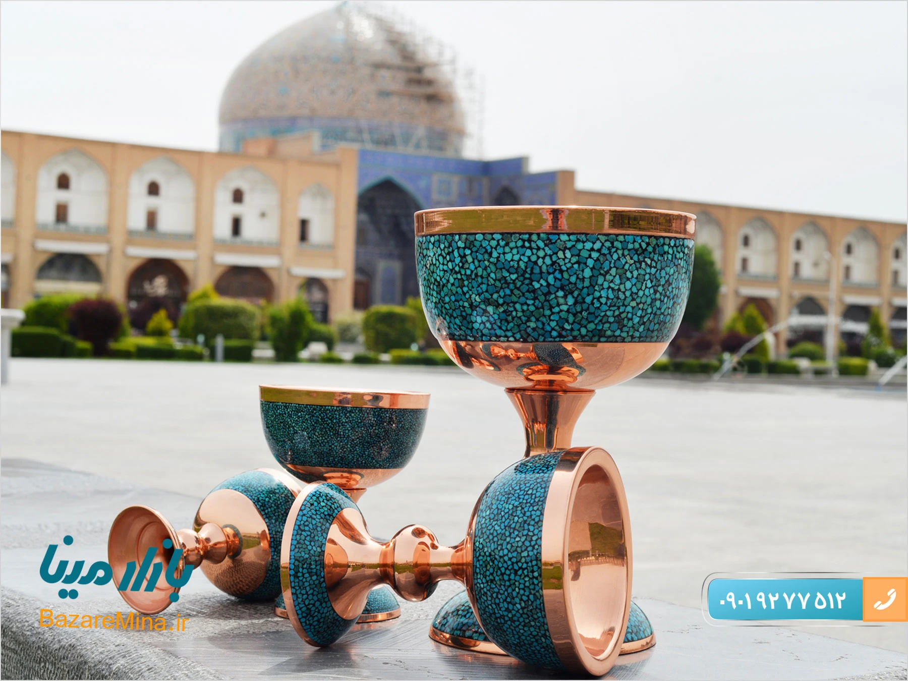 عکس فیروزه کوبی در اصفهان توسط واحد تولید محتوای فروشگاه بصورت اختصاصی گرفته شده و برای مخاطبان در سایت قرار داده شده است. البته عکس های ظروف فیروزه کوبی در قالب محصولات نیز معرفی شده است.