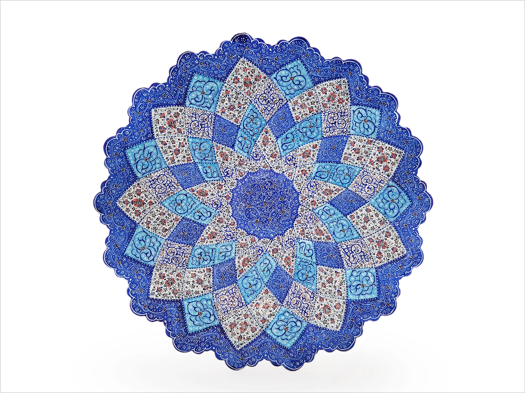 A stunning illustration of the fine technique of enameling on copper is the 35 cm Isfahan enamel (Mina Kari) plate. A 35 cm enameled plate can be used to serve meals in addition to beautifying the decoration design.