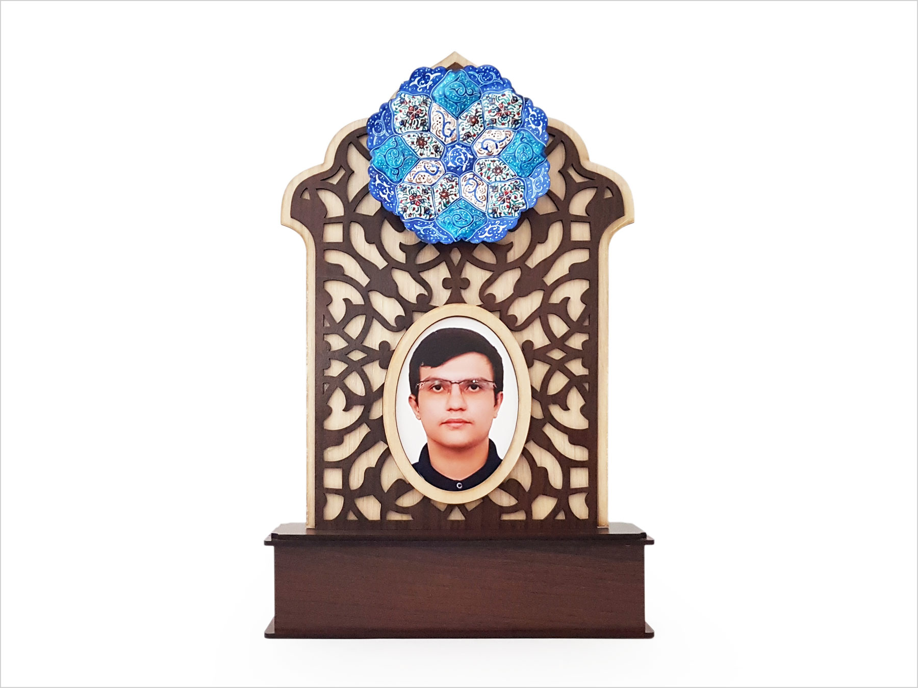 MinaKari (enameled) paisley Trophy with Sama design is made of thin wood fibers that are carefully cut with a laser device. The height of the Trophy is 22 and its pedestal’s dimensions are 2.5 * 7 * 9 cm.